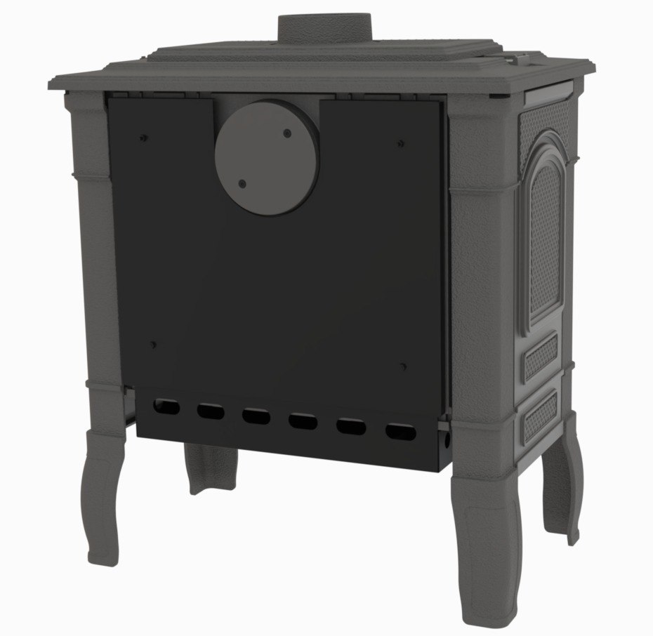 Топка из чугуна обладает превосходной теплопроводностью и стойкостью к высоким температурам. Панорамная дверца создает впечатляющий вид на пламя, придавая вашему интерьеру особый шарм.
